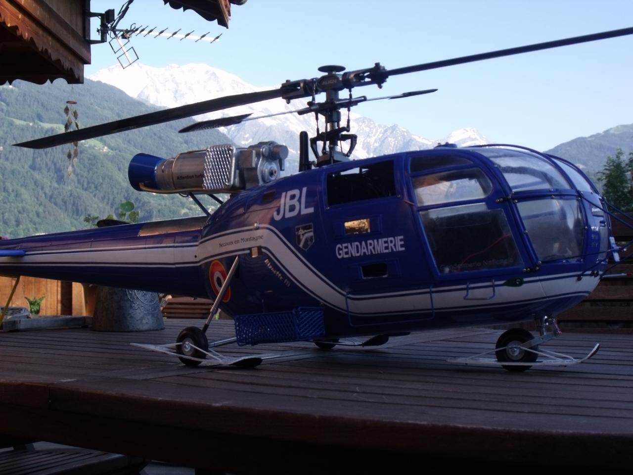 Alouette III Gendarmerie AVEC LE MONT BLANC EN ARRIERE PLAN