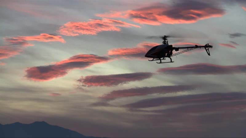 Coucher de soleil sur un Trex 600.