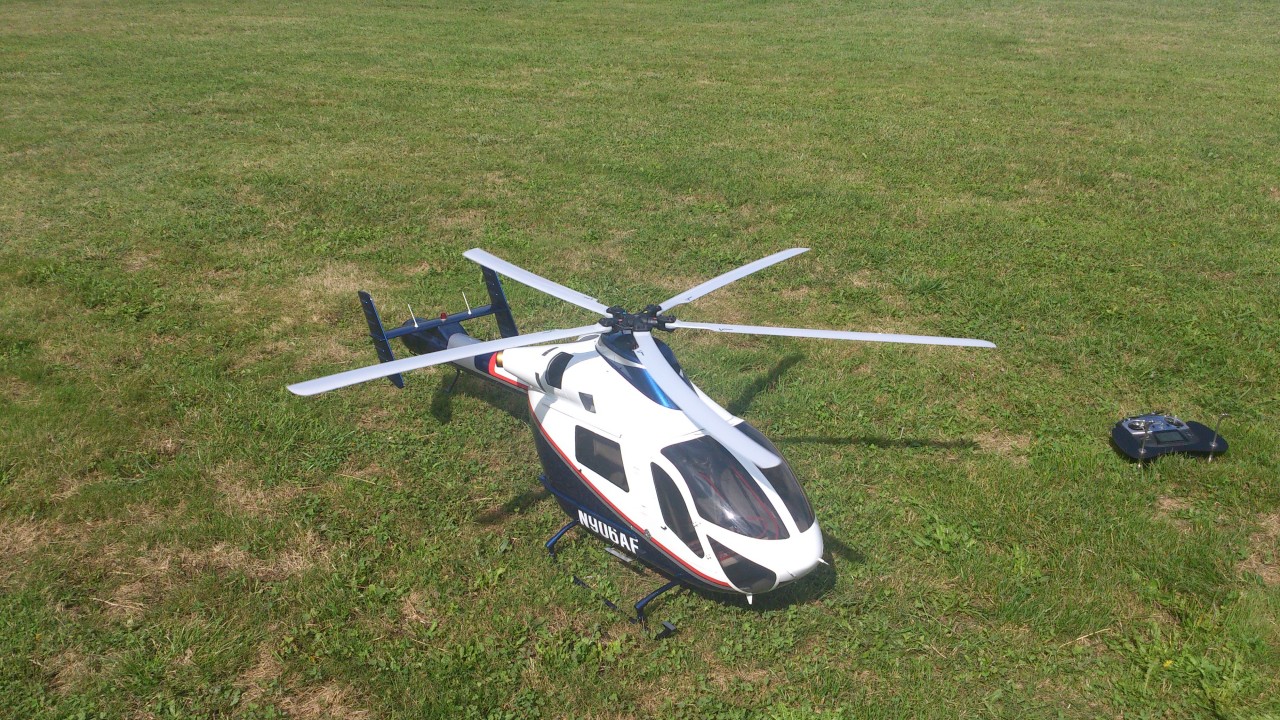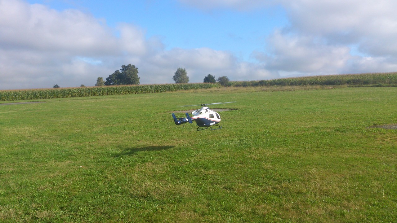 Pour ce qui est de la mecanique Vario Notar avec le moteur Webra et son pot, cela fonctionne parfaitement bien, c'est la configuration que j'avais à l'époque sur ma machine. Par contre en 5pales il faut faire attention car le moteur tourne quasiment a pleine puissance durant tout le vol. Et plus de couple qu'en bipales donc il faut qu'il tourne très vite pour qu'il y'ai la pression d'air nécéssaire à la queue.