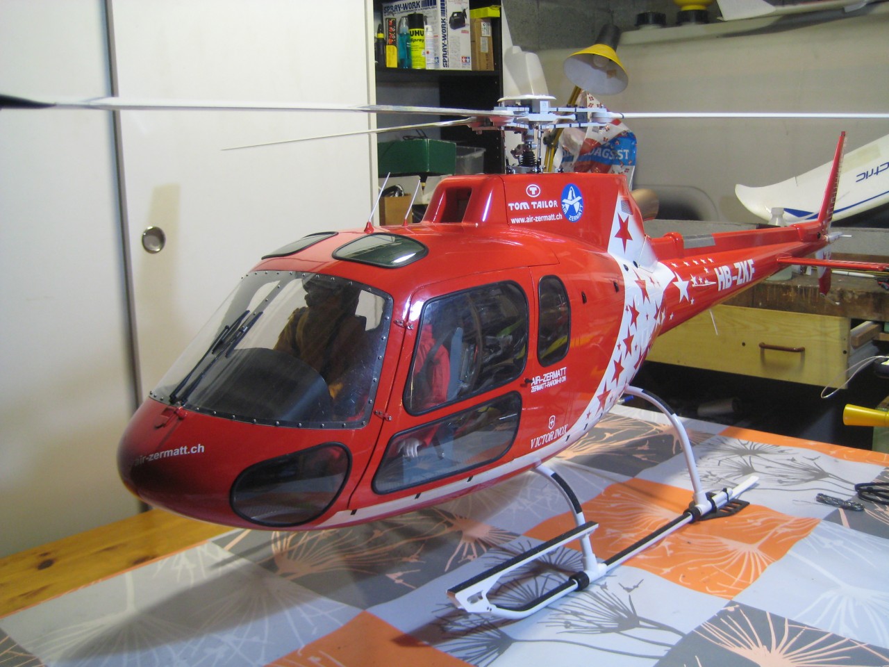 Le choix de la livrée Air Zermatt c'est fait suite au survol de la maison par le vrai appareil.