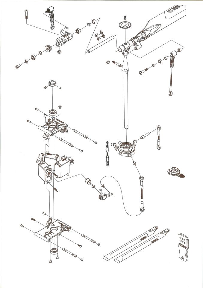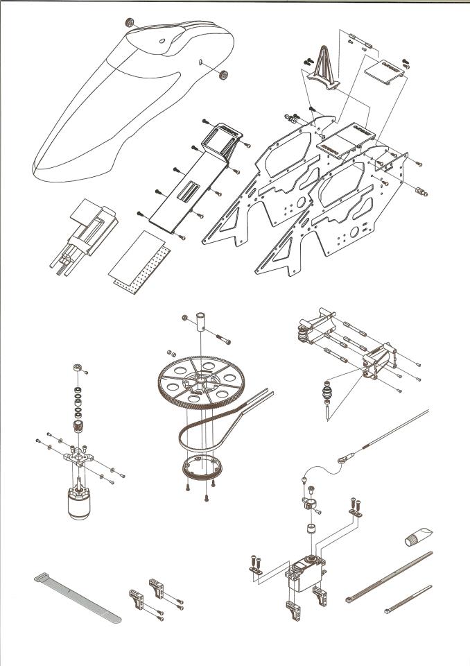 Le design est sympa, un block pour le montage des servos, poulie, axe, ça fait un peut penser au Mini-proto quand même, tête type DFC à la mode Align, quand à la bulle très profilée elle est à la sauce 'Goblin', les Japonais s'inspirent des models Européen je trouve que c'est plutôt bien et prouve une fois encore que sur le vieux continent ont a de bonnes idées. C'est donc un 'Melting pot' EuroTaiJaponais'