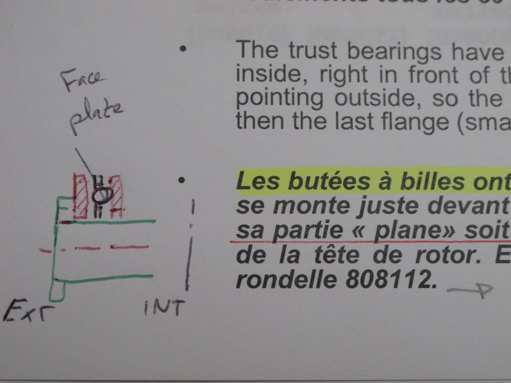 Je n'ai rien trouvé de précis concernant le sens de montage d'un thrust bearing de pied de pale, entre la partie cuvette où il y a les roulements et celle plus plate où l'on voit qu'une partie de la sphère, laquelle se met vers l'extérieur du pied de pale ?